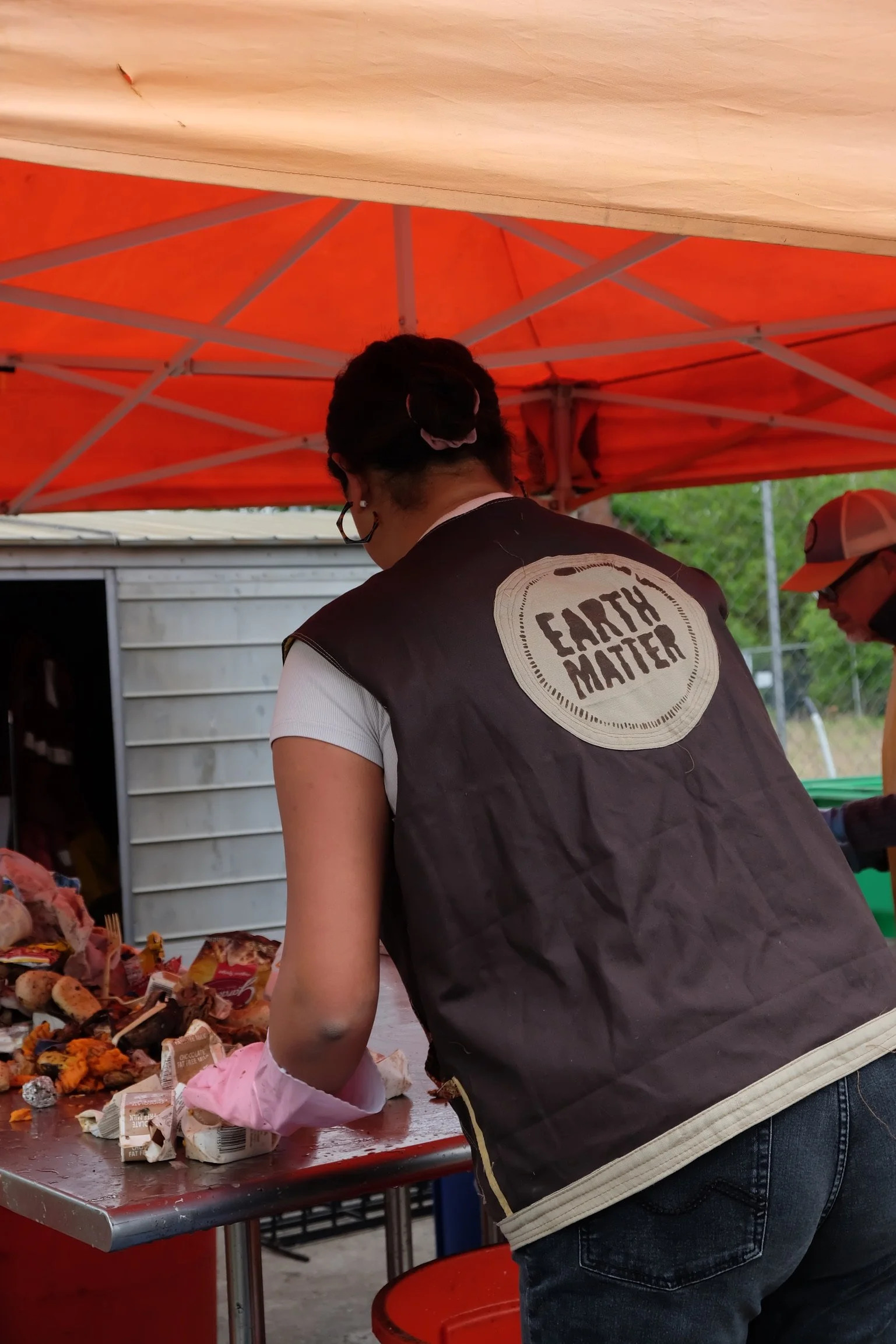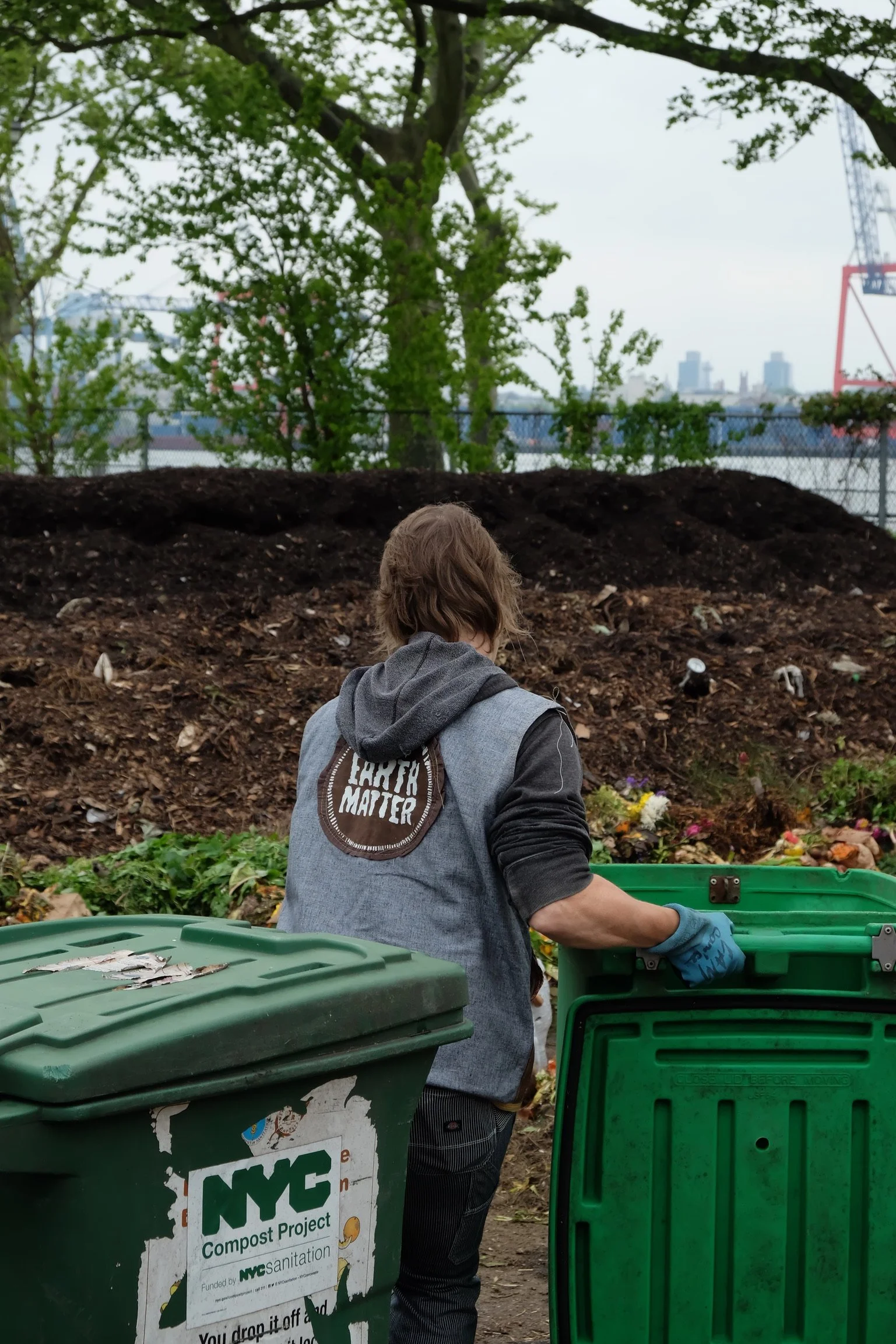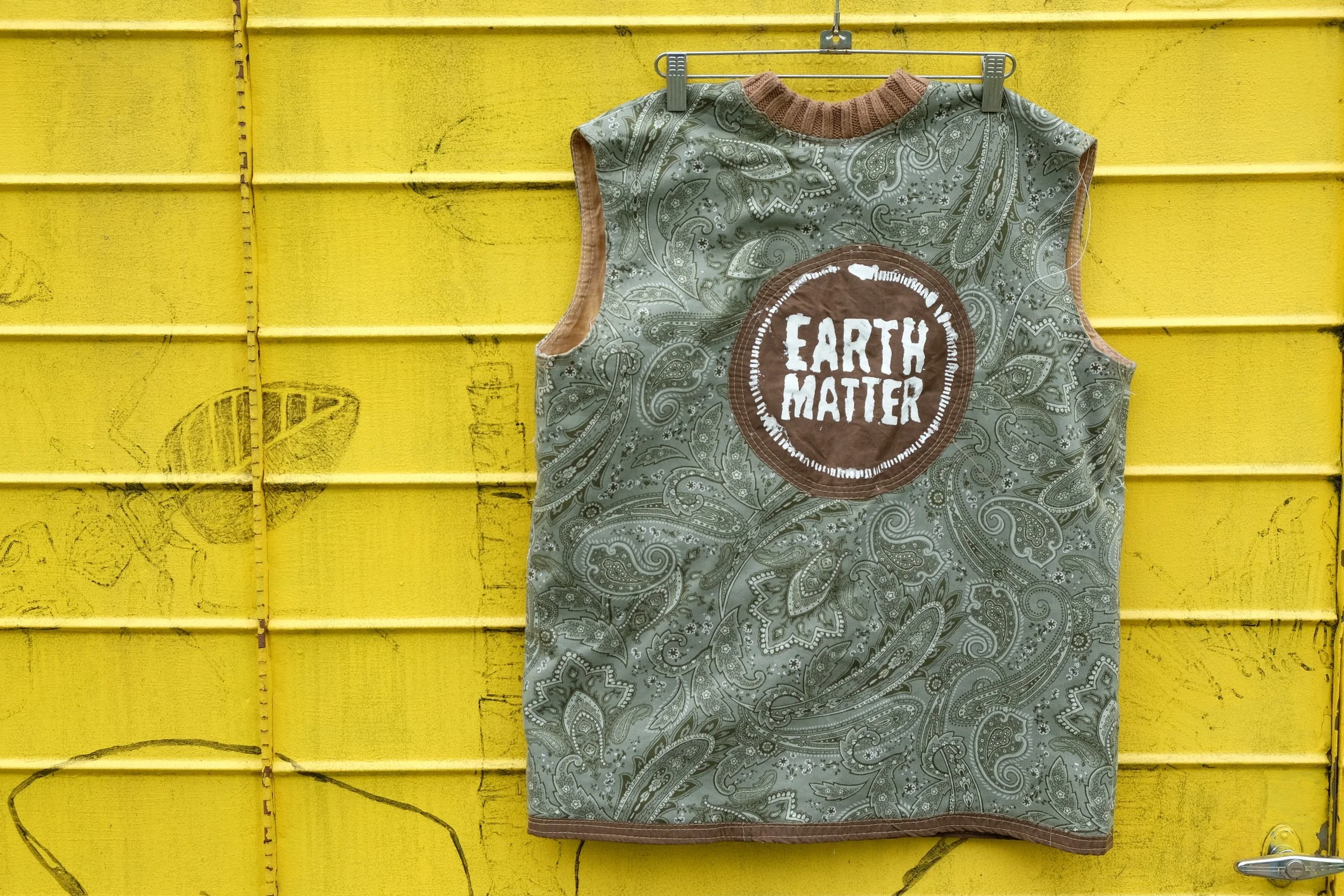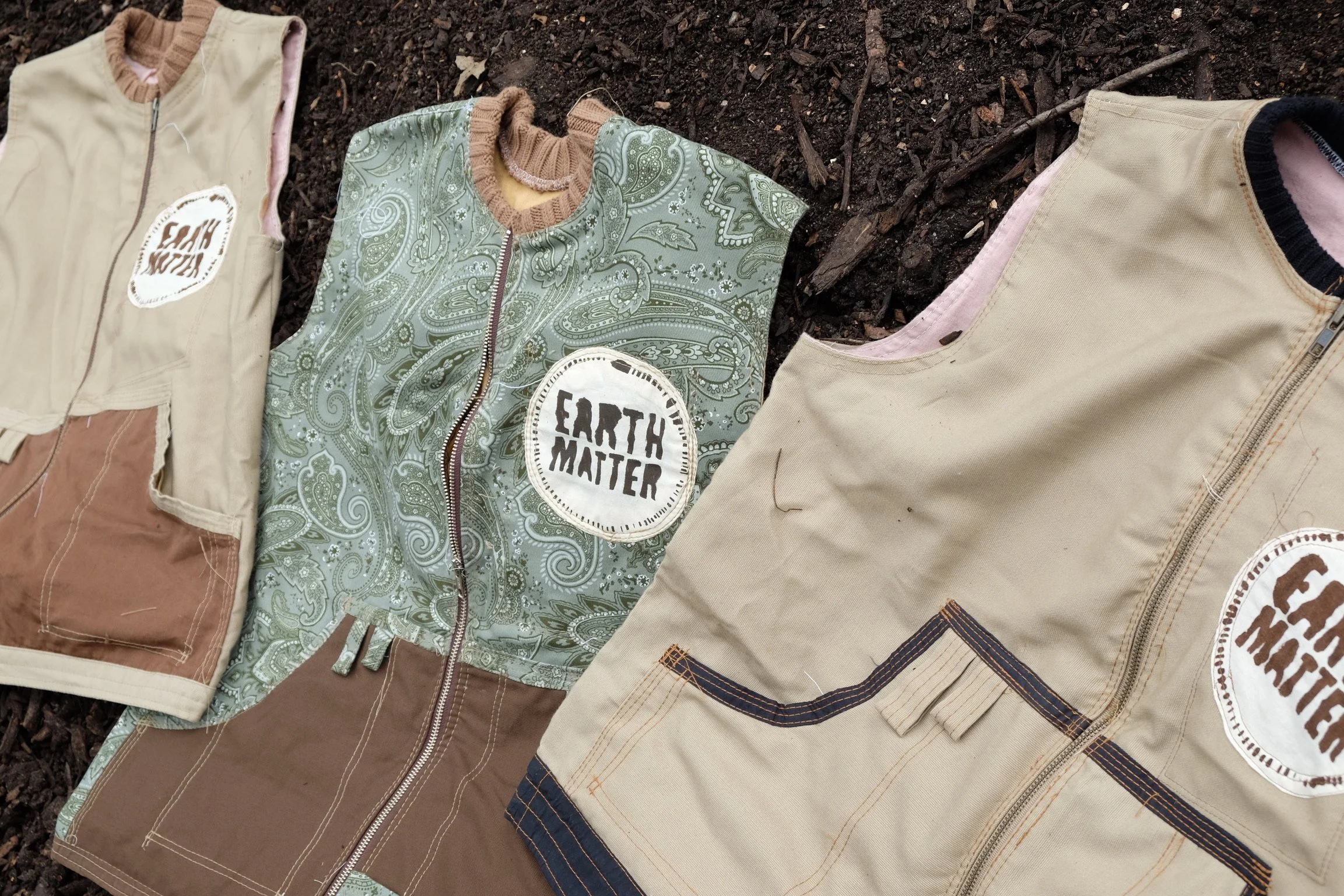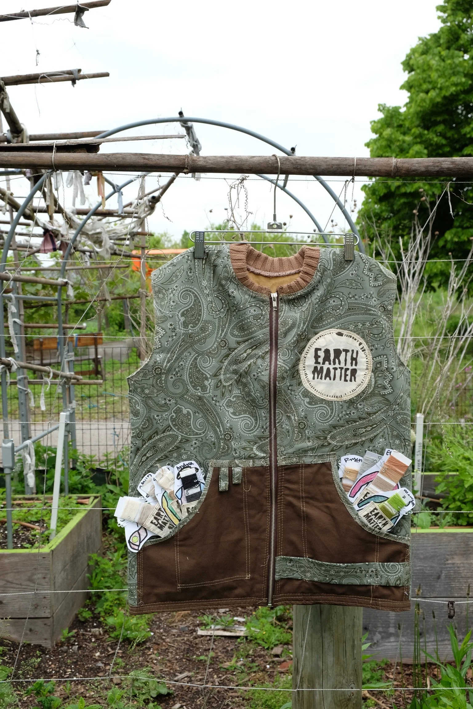 These custom utility vests were designed for my Pre-Thesis project, and in collaboration with Earth Matter NY, a community composting non-profit organization located on Governors Island. The goal of this assignment was to “uplift and empower a group of marginalized bodies.” In 2024 all community composting programs across NYC lost funding from the Department of Sanitation, leading me to choose the Earth Matter staff as my focus for this project. I began by volunteering weekly and determining with the team the type of garment I would make. Later discussions focused on fitting, style, material, and special design requests (internal pockets, key loops, etc). After 4 months of meeting and volunteering, the result was a collection of 7 cohesive yet personalized utility vests. These vests have since been worn by members of the staff to represent Earth Matter NY at the BPI Compostable National Convention and Queens’ County Farm’s Health Fair, and in videos by Food Tank.